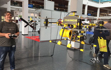 Die AERO Drones wurde 2017 am Vortag mit einer Live-Darstellung im Rahmen einer Feuerwehrübung auf dem Bodensee eröffnet. Wir haben die Planung und Durchführung übernommen und auch das Genehmigungsverfahren inklusive aller Anträge abgewickelt. Am ersten Messetag folgte ein eintägiges Fachsymposium zum Thema "UAS im Umwelt- und Katastrophenschutz.